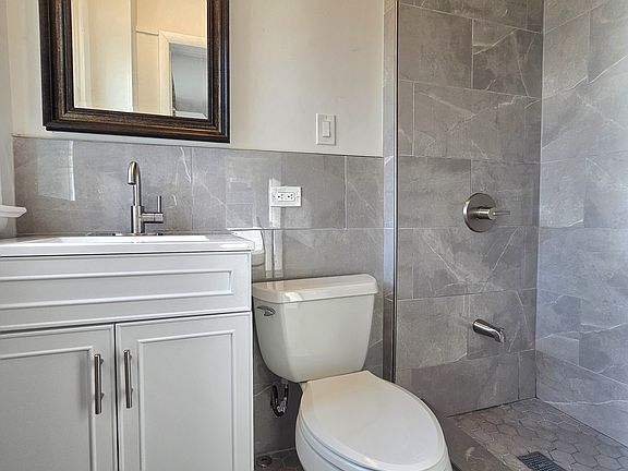 This bright, airy and spacious 3rd floor unit features new hardwood and large tile flooring throughout, brand new kitchen with quartz counter tops, walnut colored Shaker cabinets, matching stainless steel appliances and dishwasher, king sized living room/dining room, ultra modern bathroom, spacious bedroom with direct access to individual washer dryer area and an additonal spacious bedroom with sliders leading out to your very own deck with an amazing elevated view.