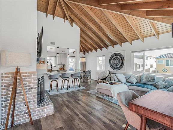 Coastal Comfort Meets California Charm -- Just steps from the sand, this beautifully updated 2-bedroom, 2-bath one-of-a-kind condo in Oxnard Shores offers the perfect blend of beachside serenity and modern convenience. Enjoy peek-a-boo ocean views from the living room and bedroom, vaulted wood-beam ceilings throughout, and a cozy fireplace that anchors the inviting living space. Both bathrooms have been remodeled with skylights that fill the rooms with natural light, and the chef's kitchen shines with newer cabinetry, stainless appliances, and a striking copper sink. The primary suite features a walk-in closet and serene ambiance, perfect for unwinding after a day at the beach. Entertain with ease on the dining deck or in one of two spacious patios--complete with a fire pit, garden area, and a fenced-in space ideal for pets.Additional highlights include a 2-car garage with washer, dryer and EV charger, plus a dedicated parking space for guests or extra vehicles. Dual-pane windows and a low HOA add comfort and value. Nestled between Malibu and Santa Barbara, this move-in-ready gem delivers coastal living at its finest--complete with ocean views from your front door