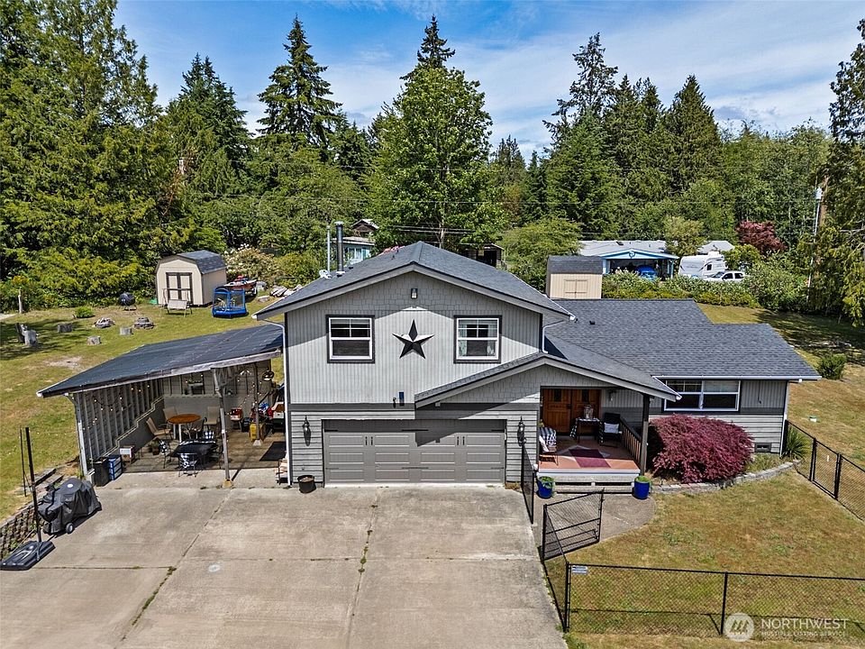 Private & oversized lot on a quiet road in Central Kitsap blends space, function & comfort in a beautifully updated tri-level | Chef’s kitchen centers around a premium Wolf gas cooktop, w/rich wood cabinetry, expansive counters & InstaView LG fridge | Hardwood floors, custom tile & a flexible layout offer room to gather, retreat or entertain | Multi-level Trex decks, fenced patio, stamped concrete & a covered outdoor zone make the backyard shine | Massive RV parking doubles as hosting space | NEW furnace and heatpump installed | Expansive yard, high-end closet systems, updated features & versatile flex areas | Minutes to Dyes Inlet, local parks, Navel base, ferry & top schools | Move-in ready, thoughtfully finished & built to fit real life.