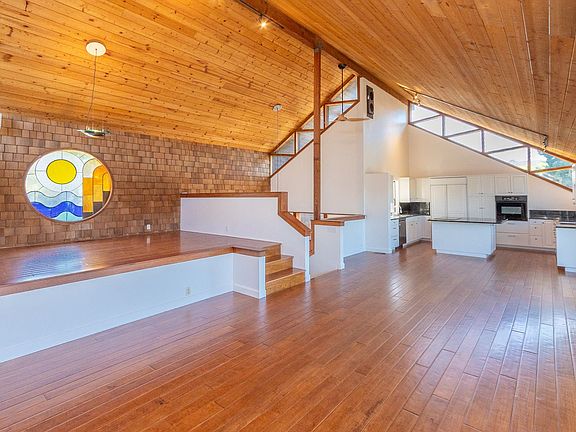 Nestled in one of San Diego's most sought-after neighborhoods, this split-level A-frame home combines warm, earthy tones with a touch of mid-century modern design. Set on a spacious lot with mature landscaping, the property features a large enclosed yard and pool, perfect for enjoying the Encinitas lifestyle. On the main/upper level, soaring cathedral ceilings flood the living space with natural light, and open living that flows out to an expansive deck, perfect for grilling, lounging, and entertaining. A striking stained glass window adds unique character, and the deck connects both the living area and kitchen, overlooking the lush backyard and pool. The large open kitchen offers abundant cabinet space, dual sinks, and a generous center island that's perfect for gatherings. The lower level offers remarkable flexibility. The west wing includes three spacious bedrooms, two bathrooms, and a separate entrance, while the east wing features another bedroom, full bathroom, laundry area with washer and dryer, and a bonus room, ideal for a home office or creative studio.