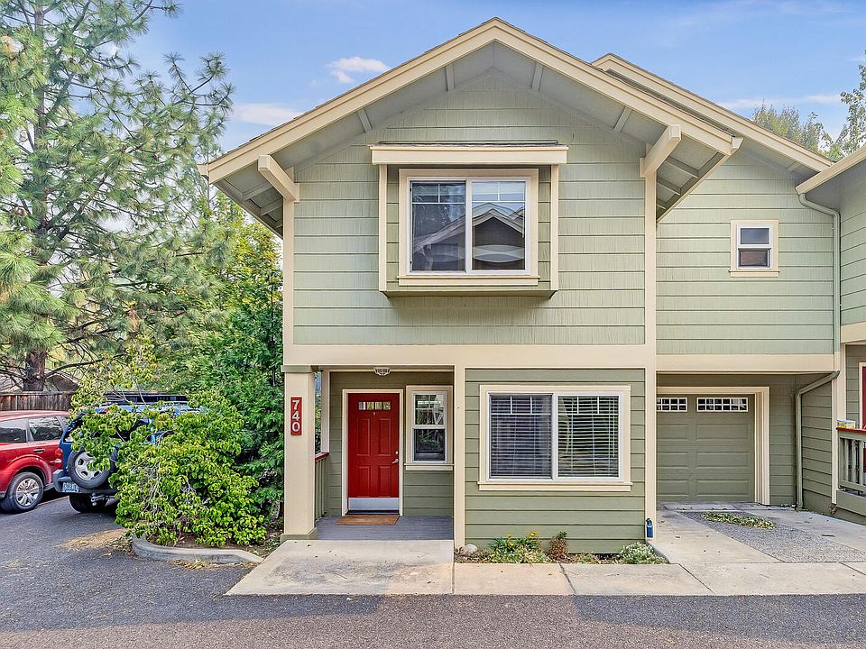 Darling 2 bedroom, 2.5 bath end unit condo is set off the road for quiet and privacy. Downstairs features living and dining area which are open to a small but private, fully fenced yard, powder room, built in storage closet and a convenient kitchen featuring stainless steel appliances, granite counter tops and tile floors. Both bedrooms, office/den and the two additional bathrooms are located upstairs, along with the laundry facilities. The main bedroom boasts a large closet and private deck access. Finished one car garage with additional storage and easy unit access. Close to schools, shopping, bike paths, nature trails and parks.