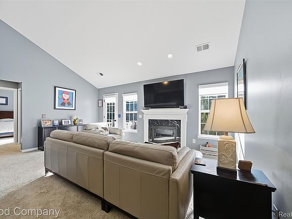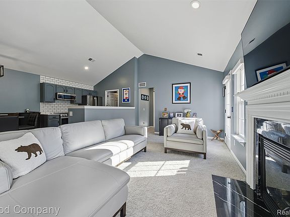 Cozy gas fireplaceSoaring ceilingsCustom closetsOpen-concept kitchen