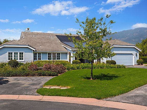 Rarely available! One of only 12 homes in the gated community of Sierra Madre Heights. Prepare to be amazed at the perfection of what this ''Smart Home'' has to offer. This single level 2,478+/- square foot home has majestic mountain views, featuring 3 bedrooms, 2 full baths, and a powder room. Almost completely reinvented in 2020; new roof underlayment, newly installed solar panels with back-up battery, electric car charger, Nest system, new windows, new heater, central A/C installed, new updated kitchen with stainless steel Kitchen-Aid appliances, new flooring, cathedral ceilings, and gas fireplace in living room. There is a community well, pool and spa. No electric bill, no water bill, and fire insurance is covered in the HOA. Ring security system in place and attached 2-car garage. This home must be seen to appreciate. Perfect for the most discerning buyer looking for move-in ready.
