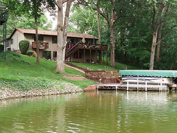 Looking for a Vacation or Full Time LAKE LIVING?! This 4 BR, 3 Full BA is Nestled at the End of a Cove of Lake Petersburg. Private WOODED VIEWS Next Door and Beyond the Water. Updated Kitchen Features Quartz Counters, Pantry and Maple Cherry Stained Cabinets with a Tiled Back Splash. Custom Blinds Throughout. Spacious Master Suite Features Double Closets w/Separate Dressing Area. Mudd Room off Garage Plumbed for Washer/Dryer. Finished WALK OUT Lower Level has a Family Room with CUSTOM Wet Bar, Full Bath, 4th Bedroom and ample Storage with Workshop and Whole House Water Filtration System. Enjoy Relaxing on Either the Upper Level Deck or Another at the Water's Edge. For your Boating Festivities there is an U-shaped Dock with Lift!