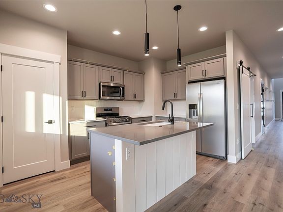 Welcome to the final phase of Rogers! This newly built condo is perfectly positioned to take in beautiful, lush views, blending modern design with everyday functionality. The main level features a flexible bedroom and a full bathroom just across the hall, ideal for guests or a home office. The kitchen is outfitted with stainless steel appliances, a gas range, and a stylish tile backsplash, opening seamlessly to the living and dining area. A covered back patio leads to a fully fenced, landscaped yard, perfect for enjoying Montana’s seasons. Upstairs, the spacious primary suite includes a walk-in tile shower, double vanity, and a generous walk-in closet. Two more bedrooms, a full bath, and a cozy nook at the end of the hallway offer added space for work or relaxation. Enjoy morning coffee or evening sunsets on the covered balcony with serene Bridger views. This is one of the last opportunities to purchase in Rogers’ final phase, don’t miss out on this thoughtfully crafted home.