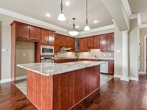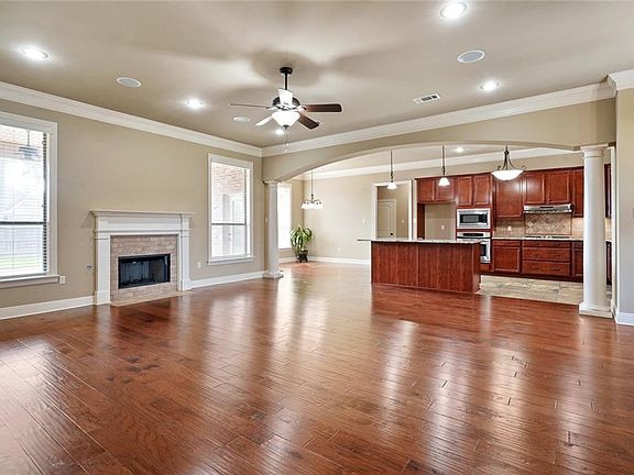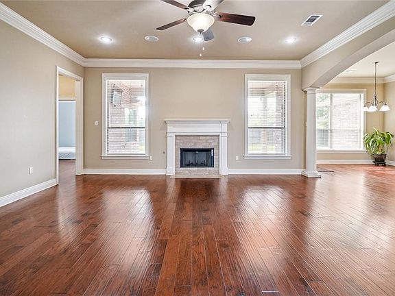 PRIME LOCATION in the beautiful Village of Normandy Oaks! Split plan features 4 beds, 3 full baths & office nook, wood floors, gas fireplace, surround sound, alarm & digital thermostat. New A/C in 2021! Kitchen is open to living & dining, granite, stainless appl. & center island w/breakfast bar. Primary suite has garden tub & separate shower, dual sinks & lg closet. Huge patio w/TV for entertaining. Outdoor closet great for storing lawn equipment. Fenced backyard has rear access w/parking area.