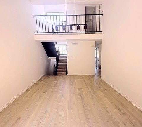 Stone fireplacePrivate backyardAbundance of natural lightIndividual walk-in closetsSpacious bedroomsRefreshed kitchenHigh vaulted ceilings