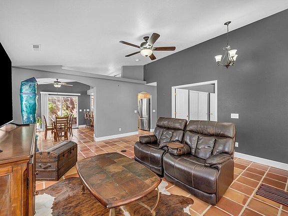 Beautifully updated Red Mountain West home, in an unbeatable location nearby to restaurants, shopping, and more! This incredible home boasts tall, vaulted ceilings and tons of natural light creating an expansive and airy atmosphere, while thoughtful upgrades including new lighting, baseboards, and freshly painted walls complement the new Spanish tile flooring. The kitchen is a chef's dream with granite countertops, ample cabinet storage, a bar area, and high-end Kenmore appliances including a dual oven, microwave, and refrigerator. Each room is equipped with ceiling fans and a Nest temperature control system ensures comfort year-round. The spacious primary suite features a large walk-in closet, and a dual vanity in the primary bath. The backyard oasis is perfect for entertaining with a shaded patio, hot tub hookups, plenty of privacy, and beautiful landscaping with a new irrigation system. In addition to the large laundry room with extra storage, the spacious, 2-car garage offers storage on both sides! Situated in a quiet neighborhood with beautiful mature landscaping, this home offers privacy and serenity with the convenience of nearby amenities. Buyer to verify all information, deemed reliable, however buyer to verify all info including utilities, rental restrictions, and HOA information if applicable. The listing Broker's offer of compensation is made only to participants of the MLS where the listing is filed.