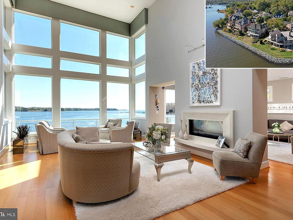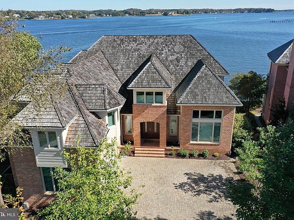 740 South River Landing is a truly magnificent waterfront home with panoramic South River views all the way to the Chesapeake Bay. Totally renovated in 2012, this five-bedroom, six and a half bath home is one of the most sophisticated homes on the market today. Located in a gated community, this custom, all-brick home includes a 50 ft boat slip at the deep-water community marina. Stepping through the foyer your view goes straight ahead to the two-story wall of windows. The main level open floor plan allows for water views from virtually every room. The living room has a soaring ceiling, double-sided gas fireplace, and is at once dramatic and cozy. To the right is the family room with wet-bar, fireplace, and more incredible views. The dining area and entertainer's kitchen is adjacent to the living room on the other side. Custom cabinetry, gorgeous quartz and concrete countertops, top-of-the-line Wolf and Sub-Zero appliances, 2 center islands, and tons of prep space make this a perfect place for hosting family and friends. This level also has a spacious home office and a powder room. Upstairs, the owner's "penthouse suite" offers luxurious sleeping, dressing, and exercise areas. The oversized bedroom has a large sitting area with private deck overlooking the South River, and an enormous walk-in closet with bespoke built-in's and a full-size washer and dryer. Escape to your own oasis in the spa-like bathroom with oversized soaking tub, large shower with 10 showerheads, custom cabinetry, and heated ceramic tile floor. Down the hall is a private gym space with water views, a second bathroom, and a small room perfect for a second home office, craft room, or library. The walk-out lower level has a wonderful rec room with wet bar that opens to the waterside patio. There are also 3 bedrooms each with a private bath, and a fourth bedroom with direct access to a fourth full bathroom. There is a laundry room on this level as well. South River Landing includes a community marina that provides quick access to the Chesapeake Bay, tennis court, playground, and a lot of open space. It is conveniently located to Route 2 to go into Annapolis or to access Route 50. You can lock-it-and-leave-it knowing that exterior maintenance such as mowing and shoveling are handled by the community association. This is the perfect retreat in any season!