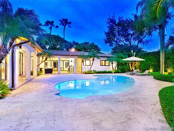 This magnificent 5 beds/4.5 baths gated smart home with pool is nestled on a 19,215 sq ft lot in the desirable Ponce-Davis Platinum Triangle of Coral Gables. Updated beautifully with lots of custom amenities will captivate you from its oversized circular driveway to its gorgeous backyard surrounded by lush tall privacy hedges! Features: 2-car garage, new impact windows & glass doors & shades, custom-built sleek kitchen with wood European cabinetry, quartz counter-tops, Viking appliances, high ceilings, working fireplace. Lots of techy systems: cameras, wireless alarm, intercom, smart control app. The Master suite has 2 custom-built walk-in closets, dual sinks, whirlpool tub & separate shower. Others: laundry room, linear air vents, partial generator, salt-water heated pool.