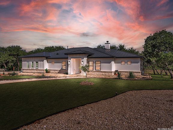 Lock in ownership with a 4.5% fixed rate!!! Luxury One-Story Custom Home in Belle Oaks Ranch Tucked away at the end of a quiet cul-de-sac in the prestigious Belle Oaks Ranch, this one-of-a-kind single-story custom home offers the perfect blend of elegance, space, and privacy. Situated on a 1.16-acre lot, this home features 6 bedrooms, 4 full bathrooms, and 2,841 square feet of beautifully designed living space. Step inside to soaring ceilings, an open-concept layout, and luxury finishes throughout. The gourmet kitchen flows effortlessly into the living and dining areas-ideal for both entertaining and everyday living. You won't want to miss the massive flex room, perfect for a media room, game area, or second living space. The private primary suite offers a spa-like bath and generous walk-in closet, while spacious secondary bedrooms provide flexibility for guests, multi-generational living, or office space. Enjoy the peace and space of country living with resort-style amenities including gated entry, pool, clubhouse, trails, and courts-all just minutes from Bulverde and San Antonio conveniences.