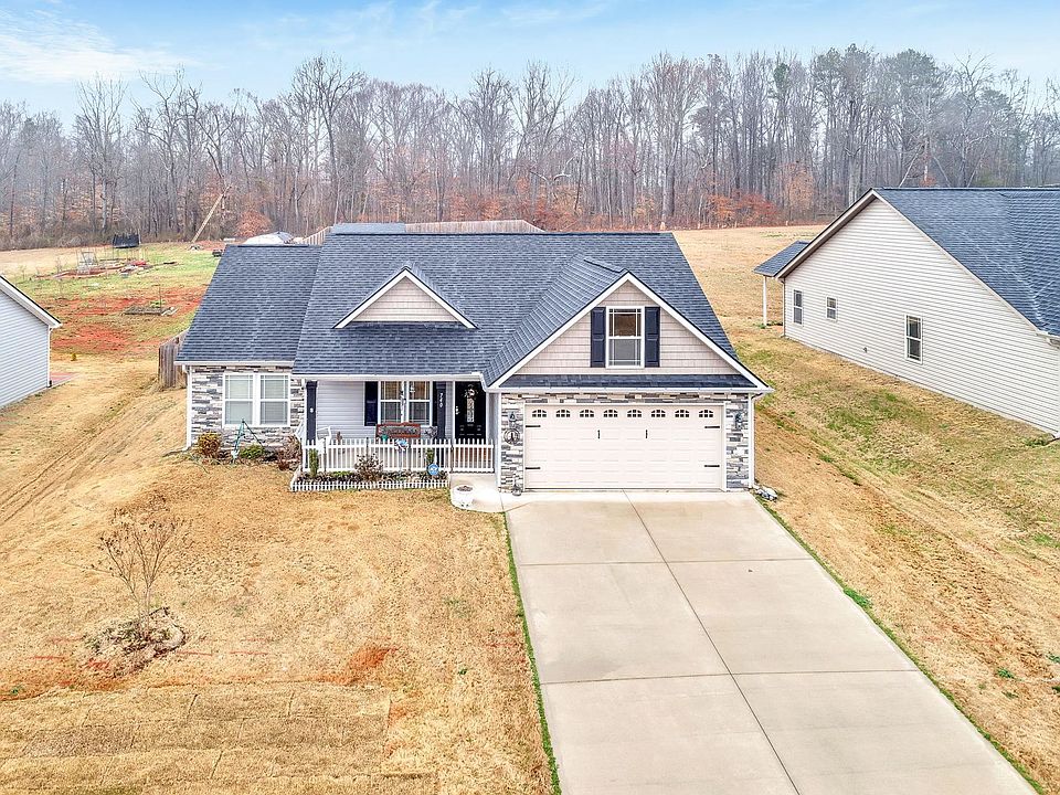 Explore this wonderful one level split bedroom plan . Enjoy 3 spacious bedrooms. The seller added a professionally contracted sunroom which makes this plan just under 1800 sq.ft. Also enhancing this home is a fenced backyard, extra sod and a huge outbuilding with electricity . This is great for extra storage , lawn or gardening equipment , workshop and more. the kitchen with island has plenty of counter surface and can be set up with barstools. It is open to the living room and sunroom. The light and airy feel in the living room and eating area is due to an abundance of sunlight from front to rear windows. Open the windows and get the fresh air throughout the home just like what a breezeway creates. Relax on the covered front porch or in the backyard on the patio while grilling your favorite meal. You'll love living in this area of Spartanburg county as you have beautiful lakes near you with gorgeous mountain views while driving the area. Country living and yet within 15 minutes of restaurants, shopping and plenty of grocery stores. This is in the well sought after Byrnes High School district along with Lyman Elementary, D.R. Hill Middle school.