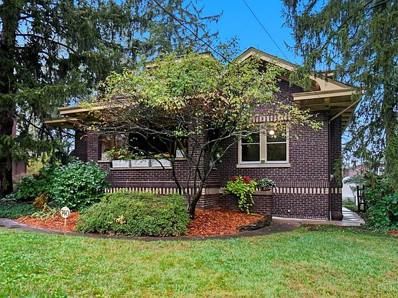Gorgeous brick bungalow with Craftsman details; stunning hardwood floors, high ceilings, and lots of storage. Vintage tile fireplace surround, built-in bookcases, formal dining room, eat-in kitchen with new stainless steel range, dishwasher, microwave. and flooring. Two bedrooms, full bath on the first floor, new carpet, 1/2 bath, two spacious bedrooms with built-ins on the second floor. Walk-out basement with office/exercise room, 1/2 bath, and rear garage. Charming front and back porch, with a large flat wooded lot. Close to schools and the village. You will fall in love with this beauty!
