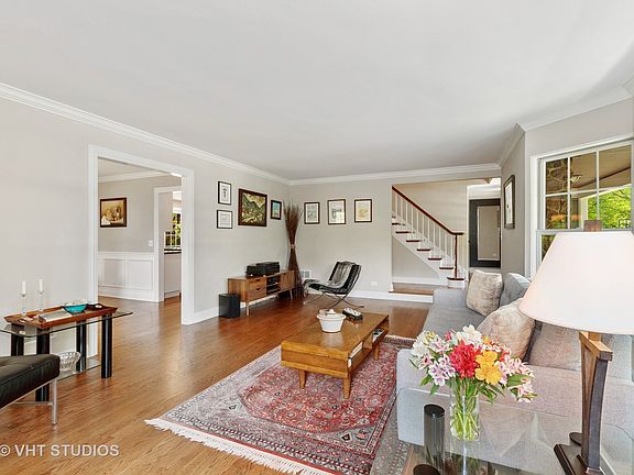 Get ready to fall in love with this stunningly renovated Cape Cod in one of Libertyville's most desirable neighborhoods. Tucked away on a peaceful cul-de-sac and surrounded by trees, this picture-perfect home boasts 4 bedrooms, 3.5 baths, and a 3 car garage. The kitchen is a true showstopper with sleek granite countertops, stainless steel appliances, and chic subway tile backsplash. It flows seamlessly into the cozy family room and out to a private backyard oasis. With a surround sound system throughout the family room, patio, and basement, this home is perfect for entertaining guests. Gleaming hardwood floors grace this home throughout, adding warmth and sophistication. The elegant living room and cozy finished basement both feature fireplaces for those chilly evenings. The expansive master suite is a dream come true with a spa-like bath, walk-in closet, and office, providing an idyllic retreat from the world. Newer windows and Hardie board siding add to the home's polished modern look, while the lush backyard offers a completely fenced space to play. Located within easy walking distance to town, schools and Butler Lake Park, this is the perfect home for anyone looking for a low-traffic street and a prime location. Don't miss out on the chance to make this gorgeous home your own!