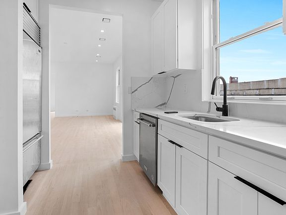 There are 2 more generously sized bedrooms and 1 fully renovated marble bathroom. There are Incredible details abound, including high ceilings, beautiful hardwood floors, new noise-reducing windows with so much natural light throughout the entire home. There are an abundance of custom built-ins and closets in every room and hallway. The rear wing also features a Full sized Washer and Dryer as well as central AC and Heat throughout the entire home!