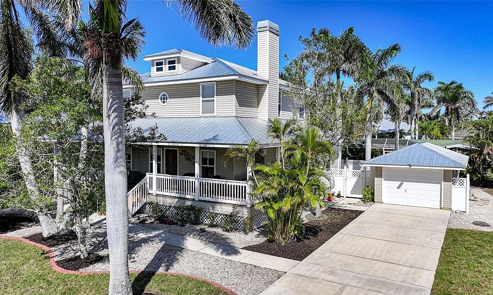 Nestled in the heart of downtown Punta Gorda, this stunning beauty offers the perfect blend of charm, comfort, and convenience. Located in the historic district, you'll enjoy easy access to all the vibrant shops, restaurants, and waterfront attractions downtown has to offer. A short walk takes you to the beloved Gilchrist Park, an 11-acre gem along the harbor featuring walking, jogging, and biking paths, a gazebo, fishing pier, pickleball and basketball courts, pavilions, and breathtaking harbor views. The park also hosts numerous community events throughout the year, making this location truly unbeatable. As you arrive to this home, you’ll be greeted by a picturesque partial wrap-around porch...ideal for relaxing on a rocker or unwinding in a cozy rattan lounge. Inside, the first floor features gleaming hardwood floors and a warm, inviting layout with an open living area complete with a fireplace, a spacious dining room, and a generous kitchen adorned with wood cabinetry, solid countertops, and a quaint sitting area. You'll also find a convenient laundry space and a full bedroom and bathroom on this level, perfect for a downstairs primary suite, guest room or home office. Up the solid wood staircase awaits the large primary suite with plenty of extra space including dual walk in closets, offering a peaceful retreat with a full en suite bathroom featuring a walk-in shower with glass enclosure. Two additional guest bedrooms both has walk in closets and share a stylish Jack and Jill bathroom with dual sinks and a tub/shower combo, providing ample space and comfort for family or visitors. Step outside into your own private tropical oasis. The backyard features a serene gazebo, a hammock for lazy afternoons, and a sparkling blue pool with sun ledge...perfect for cooling off on warm Florida days. The detached garage includes an 8 x 13 storage room, offering plenty of space for all your extras. Best of all, the current flood insurance policy is assumable for just $985 per year! No detail has been overlooked in this downtown gem. Schedule your private tour today and see everything this exceptional property has to offer.