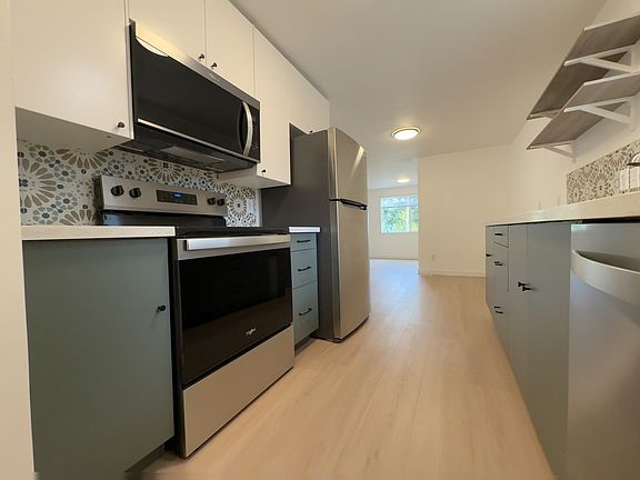 Be the first to live in this stunning newly renovated 3-bedroom, 2-bathroom ranch-style home in Beaverton close to Nike, Intel, Wholefoods, Trader Joe', Costco Wholesale and more shops and eateries in this vibrate neighborhood. Every appliance in this renovation is brand new and never used. They include washer, dryer, refrigerator, ceramic-top electric range and oven, dishwasher, and microwave. All brand-new windows and sliding door leading out onto a huge and beautiful deck. Your backyard backs against the creek where you can spot deer passing through. Welcome to this amazingly beautiful renovated sun-drenched ranch-style home near Tanasbourne in Beaverton. This lovely neighborhood home boasts central air and heat, all new luxury vinyl plank hard surface flooring 3 bedrooms 2 bathrooms and has exceptional details: engineered wide wood flooring and a wood burning fireplace along with in-unit full-sized washer and dryer. Everything in this house has been carefully appointed, modern LED light fixtures, all-new bathroom fixtures deep shower tub, two- car garage w/ opener and huge fenced yard. This home boasts an all-new kitchen including cabinets, cupboards, countertops and backsplash; two full bathrooms and a large wood burning fireplace. The house also contains very good size bedrooms with large closets. The main bedroom has two closets and ensuite bathroom. The hallway has the main bathroom with a deep shower tub and two linen closets. This house has a two-car garage. A huge refreshed deck overlooking the creek in the fenced yard is so nice you'll be eating and hosting guests alfresco all the time. The house is surrounded by nature which you'll appreciate in this lovely and quiet neighborhood. Owner pays for landscaping. Tenants responsible for all other utilities including electricity, gas, water and sewer, garbage and recycling and internet if they (desire). Move-in Costs: First month's rent plus a refundable security deposit Lease: 1 year No Smoking of any kind. Pet policy: Up to 1 cat, 1 small dog (0-25 pounds) or 1 medium dog (25 to 45 pounds) pet allowed with owner approval and $50 pet rent and $300 pet deposit. You MUST Register your pet or animal at Pet Screening. This property is managed by Barnaby Property Management LLC. Apply online at barnabypm. Non-refundable Screening fee: $65 per adult. Applicants are screened on a first come first serve basis. Open Application Period for this property is NOW. Screening criteria: Minimum credit score of 700; minimum combined household income of 3.0 x rent. Next Steps to take if you are interested: Please reach out to us via Zillow to set up tours. PLEASE NOTE: you MUST tour the house in person before your application can be accepted