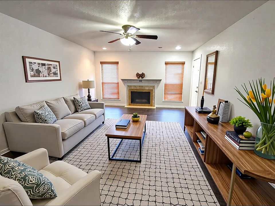 Check out this sweetly updated corner condo! It's gated and has 2 beds and 2 baths. The place has been freshly painted, and the floors are upgraded with no carpet. The kitchen's been remodeled recently, and there's a cozy wood-burning fireplace and ceiling fans in each bedroom. The generously-sized living room is perfect for socializing or entertaining, and the bedrooms are spacious with walk-in closets. All appliances are included, and there's extra storage space. The primary bedroom even has its own private, enclosed patio! Plus, you get assigned cover parking.