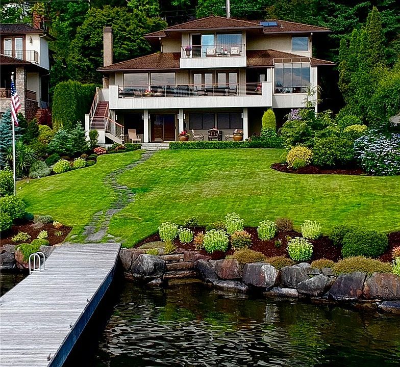 Stunning, contemporary waterfront retreat. This immaculate home is move in ready! Manicured lawn leads to 68 feet of waterfront with a private dock facing the Seahawks training facility. 3 levels of beautiful outdoor living spaces in this Chaffey home including 2 covered waterproof decks and a lakefront patio that is perfect for entertaining. Epicurean kitchen with high end finishes and appliances. Private upper level master suite with stunning views.