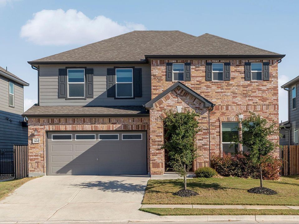 Welcome to your dream home at 7400 Lowery Crossing. This stunning property is perfect for those seeking a spacious, comfortable, and contemporary home that's crisp, clean, and ready for an immediate move-in. Boasting 3 bedrooms and 2 1/2 bathrooms across a generous 2,885 square feet, this home is designed to impress. The interior features no carpet with durable concrete flooring downstairs and luxurious vinyl upstairs, ensuring easy maintenance and a sleek look. The heart of the home is the kitchen where culinary dreams come to life. Enjoy cooking in style with granite countertops, stainless steel appliances, and a chic subway tile backsplash. The huge kitchen island with bar seating is perfect for casual meals or entertaining guests. The expansive second-floor living/playroom offers versatility for relaxing or recreation, while the downstairs office or formal dining room provides the right space for work or entertaining. Custom blinds throughout add a touch of elegance and privacy. Situated across from a community park and playground, including a baseball field and basketball courts, this location combines convenience and leisure. Plus, the backyard is pre-wired for an automatic lawn mower, making outdoor maintenance a breeze. This home also provides easy access to the airport and all the shopping conveniences at Southpark Meadows. This is more than just a house; it's a lifestyle waiting for you to step in and enjoy. Schedule your viewing today and experience the perfect blend of style, comfort, and convenience.