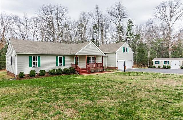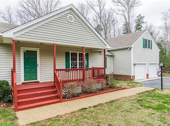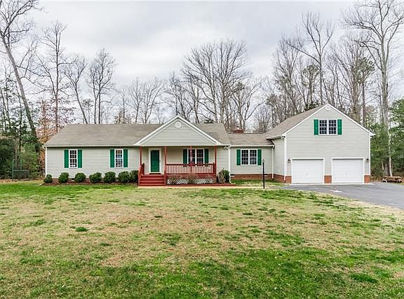 Wow! Here is that sought after ranch home in New Kent that has the privacy your looking for with almost 2.4 acres. Entire 1st floor has new laminate flooring, both full baths have brand new ceramic tile! Stainless appliances in the kitchen with lots of cabinets space and very open. Two family rooms, one with fireplace that has a wood burning insert. Four bedrooms, 3 down and one over top of huge over sized garage with shop in the rear of garage and garage also has lots of overhead storage. Storage shed with electricity. Paved driveway with lots of parking space and top it off with a cement basketball court!
