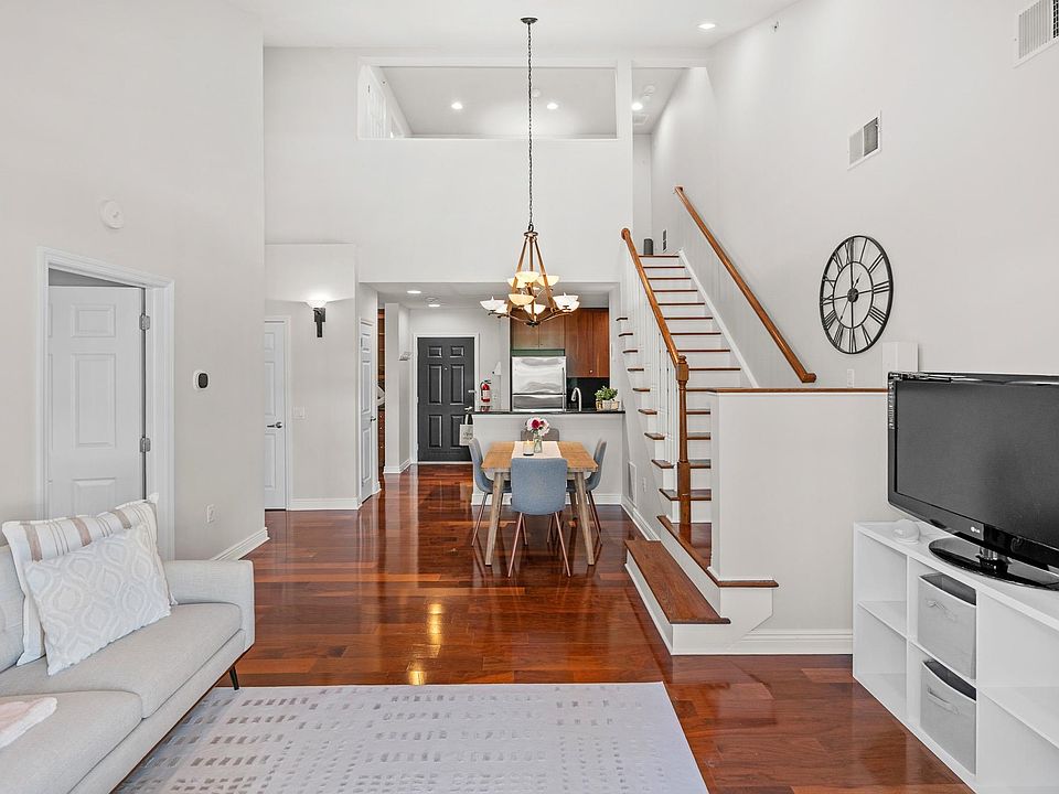 Welcome to The Views at Hudson Pointe — where luxury, space, and skyline views come together in this rare 3-bedroom, 3-bathroom waterfront condo. Boasting over 1,300 square feet of sun-drenched interiors, this home offers the perfect blend of style and functionality with the added bonus of two-car garage parking. Step inside to an expansive open-concept living and dining area, framed by soaring vaulted ceilings and rich hardwood floors. The kitchen features sleek stainless steel appliances, recessed lighting, generous counter space, and ample cabinetry. An additional flex space offers custom built-in shelving and a wine fridge. Full glass door surrounded by windows leads to your private terrace — perfect for morning coffee or winding down. The spacious primary suite is a true retreat, complete with a walk in closet and a spa-inspired bath with double sinks and a linen closet. A second bedroom and full bath are located on the main level. Upstairs, a beautifully lofted third bedroom with its own full bathroom offers privacy and versatility — perfect for a guest suite, media room, or home office space. Additional highlights include in-unit washer/dryer, Central AC, and luxury amenities: 24-hour doorman, fitness center, pool, clubhouse, and more. Commuting is effortless with express bus service to Manhattan right outside your door. Don’t miss this rare opportunity to own a slice of luxury on the Hudson waterfront — schedule your private tour today!
