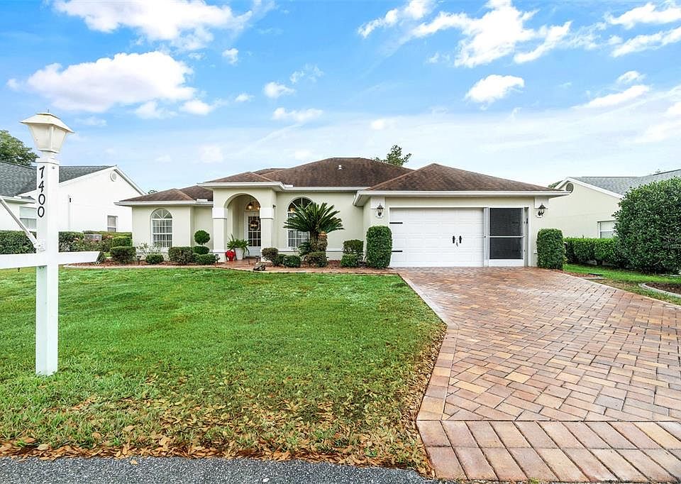 This beautiful home in Oak Run is a must-see! With 2 bedrooms and 2 bathrooms and a flex room, this home is perfect for anyone looking for a spacious living area. The split floor plan is perfect for guests, ensuring privacy and comfort for everyone. Upon entering the home, you are greeted by a spacious living room and separate dining area, with tall ceilings that create an open and airy feel. The upgraded kitchen offers modern stainless steel appliances and plenty of counter space. You'll love spending time in the spacious Florida room, which is flooded with natural light and can be used as additional living space, craft room or even a home office. The backyard is fully fenced and offers a lovely patio area, perfect for entertaining or just relaxing with your morning coffee. And best of all, this home is just steps away from The Palm Grove Clubhouse, where you can take advantage of all the amenities this wonderful community has to offer. Don't miss out on this amazing opportunity to make this house your new home! Schedule your showing today. ROOF 2015!
