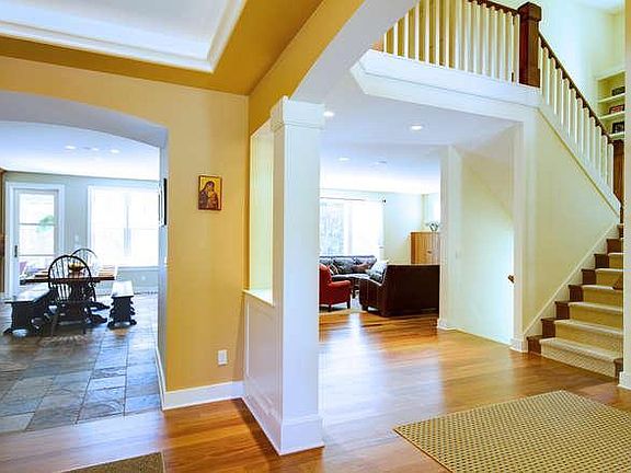 You couldn't ask for a more beautiful setting. 5/5 acres (3 lots) with an additional 30 acres of common area, 6 stall garage, 4 zones, crown modling & Hi-Fi audio throughout. Custom built w/so many features: Gourmet kitchens-Thermador double ovens, 6 gas range top w/grill, 2 dishwashers, Granite counters, Grabil cabinets, bulter pantry, large walk-in pantry, slate flooring, 5 in. Brazilian hardwood floors, library/activity/arts & crafts room, wonderful back hall lockers with shoe cubbies, hooks and bench. The Great room orffers a fireplace and large family space. There is also music rm/office on the main floor. The screened porch is just off the Kitchen w/composite flooring and screen underneath preventing insects. The upper level offers 5 BR suites w/master having a fireplace. Laundry and Bonus/in-law suite rm. The Lower level has an incredible rec rm, complete wet bar, BR, full bath, home theatre & endless pool. Check out the virtual tour & call with questions.