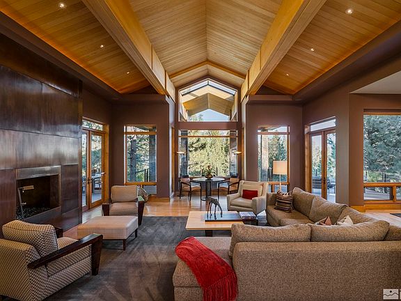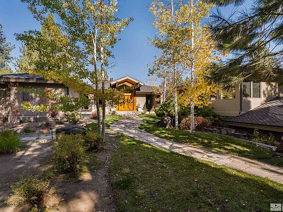 Tucked within the serene landscapes of Washoe Valley, this exceptional estate epitomizes luxury with a harmonious blend of natural beauty and exquisite craftsmanship. The property features a remarkable main house, a distinctive guest house, and, a spacious 3-car garage, offering the perfect balance of privacy and comfort. The home’s primary suite serves as a true retreat, complete with a cozy gas fireplace and lavishly heated floors. Timeless elegance extends throughout with hickory hardwood floors, inlaid Ely quartzite stone, and beechwood ceilings complemented by alder cabinets with burlwood accents in the kitchen. A 1,100-bottle wine room with a wet bar awaits connoisseurs, while the two-sided fireplace connecting the great room and library adds a sophisticated warmth. Outside, a captivating creek flows into a waterfall and pond, creating a peaceful focal point. The expansive deck, equipped with a built-in BBQ and fireplace, invites alfresco dining amid views of the surrounding forest and mountains. This estate offers a refined lifestyle where opulence meets the tranquility of Washoe Valley’s natural splendor.