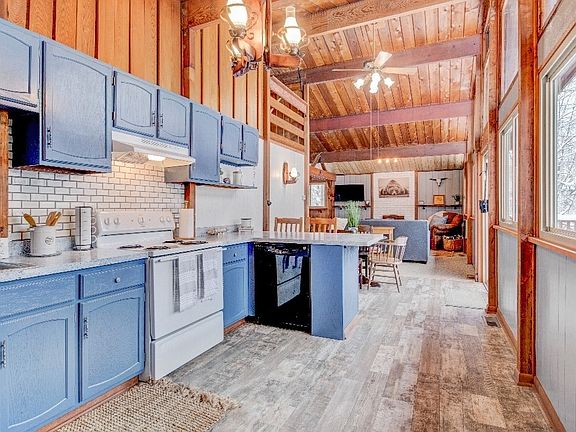 - Ceiling Fan(s), Cathedral Ceiling(s), Dining Area, Entrance Foyer, Eat-in Kitchen, Great Room, Kitchen/Family Room Combo, Living/Dining Room, Sliding Glass Door(s), Natural Woodwork, Bedroom on Main Level, Loft, Main Level Primary
