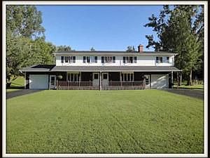 VR pricing. Seller will consider offers between $300,000 and $350,000. Beautiful 4,000+ sqft, 7 BR, 3 full & 2 half BA, 12.2 acre estate features wooded land & open green space w/drain tile & 18 mile creek running adjacent to property (no flood insurance needed). Home also boasts DR, FR w/cath ceiling & WBFP, LR w/WBFP, kit w/granite & new cupboards, baths w/granite or corian, lrg mstr suite w/BA & His & Hers closets. Tear off roof 4/13, updated windows, vinyl shake shingles, 10+ car metal barn (60x40) w/finished interior, heated concrete floor, elec, a 16' door & 2-12' doors. Minutes to 219.