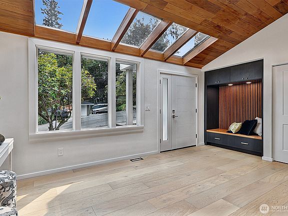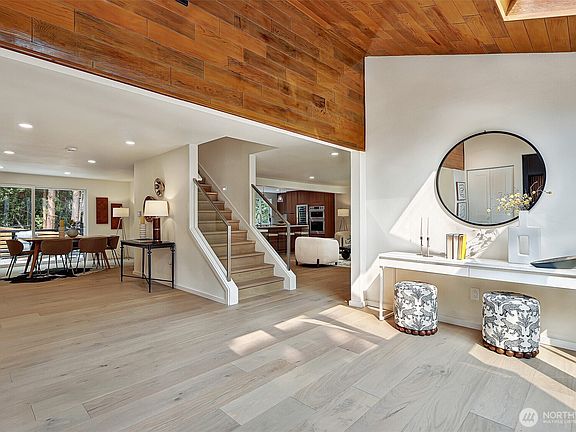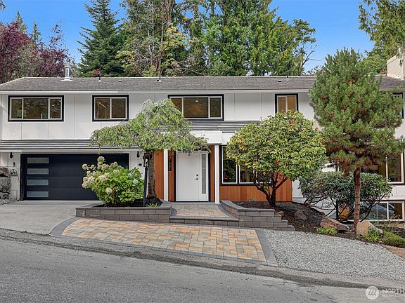 Perfect blend of timeless charm and modern comfort in this remodeled classic on a coveted corner lot. Surrounded by a park-like setting, it features bright living spaces, oversized windows, and skylights that capture abundant southern exposure. The floor plan includes five bedrooms plus an office and exercise room, open living and dining areas, and a kitchen designed for everyday cooking and entertaining. Indoor-outdoor living extends to the large deck—perfect for morning coffee, summer meals, or evening gatherings. Two ensuite bedrooms and flexible rooms adapt easily for living, working, or play. A two-car garage, quiet no through street, and quick access to Seattle, Bellevue, and local amenities ensure convenience and relaxation.