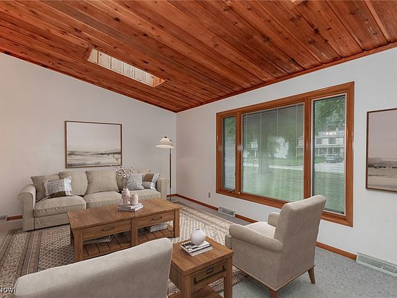 Discover this beautifully designed 3-bedroom, 2.5-bath home offering stylish architecture and inviting spaces throughout. The sun-filled living room, dining room and kitchen boast a dramatic vaulted, wood-paneled ceiling with skylights, while a sliding door off the kitchen opens to a peaceful backyard—perfect for outdoor dining or quiet relaxation.