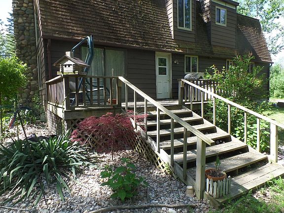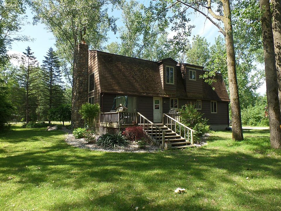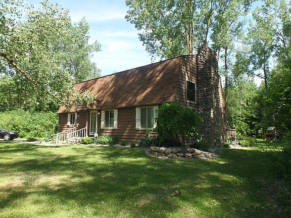 Great country setting with barn style (gambrel) home. Over 2200 sq ft of living space includes 4 bedrooms & 2 full baths. Spacious living room with soaring ceilings & balcony overlooking from 2nd story. Beautiful hand picked 2 story field stone fireplace. Huge dining room & kitchen with stainless steel appliances. 2 main floor bedrooms with 2 more huge bedrooms on 2nd floor. Cosmetic updating needed, many major updates complete within last 10 yrs include basement waterproofed (dry as a bone), roof on pole barn & upper part of home, windows, furnace plus Retro Foam insulated. Huge 48' x 32' pole barn ready for all the toys. Beautiful landscaping with boulders & stones. Great home to raise your family!