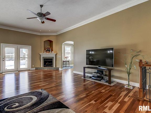 Impeccably cared for home, 11' ceilings, hardwood & tile floors, gorgeous kitchen w/granite & breakfast bar, master bath has whirlpool tub & shower, big walk-in closet, basement finished w/BR, full bath, family room - surround sound & projector, storage closet, work shop, shelving, covered back porch, 3 car garage, fenced yard, landscaped. Association pool/playground. Golf course in subdivision.