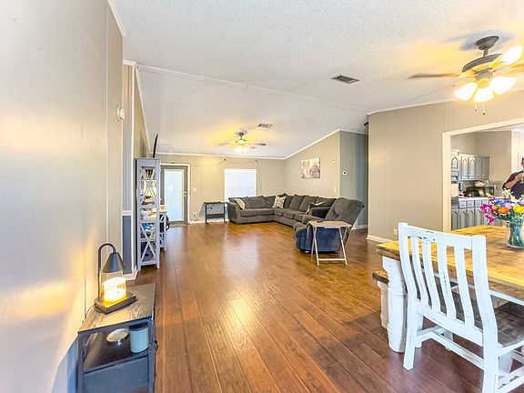 Shiloh Community! Welcome to your peaceful country retreat in Hahira! This beautifully updated 3-bedroom, 2-bath mobile home sits on an acre and offers a perfect blend of comfort, function, and rural charm. Enjoy an open split floor plan with newer kitchen appliances, a newer side deck, and thoughtful upgrades throughout. The property features a new well, new septic system with drain field, and is permanently anchored to meet financing requirements. Outside, you'll find a partially fenced backyard, a multi-car carport with open-air workshop space, and plenty of room to relax or explore. Backing up to Frank's Creek, this property offers the serenity of the countryside while still being just minutes from Hahira's shops and dining.