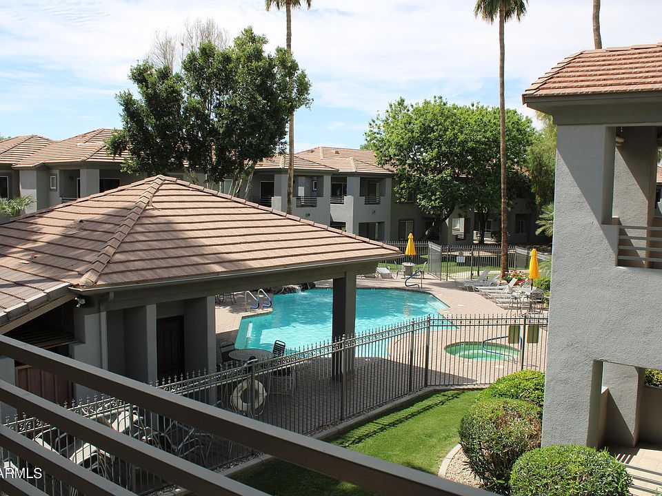 Don't miss this rare model in the prestigious, gated, Fairways at Arrowhead condo community. This upper level unit offers all on one level living, gorgeous pool views right from your large, private balcony, a single car garage, newer HVAC system, large, open concept floorplan, gas range, grand primary bedroom and bathroom with separate soaking tub and shower, double sinks, and a large walk in closet, and a sizable 2nd bedroom with private guest bathroom entrance. PLUS, the location can't be beat! Featuring quick and easy access to the Loop 101, AJ's Fine Foods, both Arrowhead and P83 entertainment districts offering loads of restaurants and abundant shopping, plus the Peoria Sports Complex and AZ Broadway theater. All this and resort style complex amenities. Come see it today!