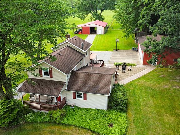 This charming Century Home offers much more than meets the eye! It sits on a private 8.5 acre lot, is super clean and has been meticulously maintained with loads of modern updates. There is first floor laundry / mudroom off the kitchen and the kitchen offers a quaint breakfast bar. The kitchen opens nicely into the dining room, and off the dining room is a spacious family room with a Woodburner/Fireplace with blower that helps keep the home warm and cozy during winter. The bathroom was recently updated (2016) and even has heated floors! There are 2 nicely sized bedrooms upstairs. The master bedroom offers a walk-in closet with built-in cabinets for extra storage. The second bedroom has 2 sizeable closets. Outside you will find a beautiful wraparound deck that is perfect for entertaining, unwinding or just sitting and enjoying the tranquility and peacefulness of your wooded view. There is a well-built 30’ X 40” Pole Barn (built 2007) with 2 stalls, 2 tack areas, hay storage platform, wa