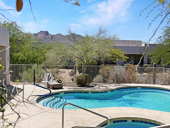 PRIME LOCATION! WALKABILITY FACTOR 100+! 2 PATIOS! END UNIT! GATED COMMUNITY! 2 CAR GARAGE! MOUNTAIN VIEWS! GREAT ROOM w/Cozy Gas FP opens to a Patio & Beautiful Kitchen-Dining Room-Private Office/Den. 2 Spacious, Split Bedrooms offer maximum privacy, both w/Walk-In Closets. 10 Ft Ceilings, Wood/Tile/Neutral Carpet/Plantation Shutters/Granite C-tops/SS Appliance pkg: LG KitchenAid Refrigerator-5 Burner Gas Range-Wall Oven-Built-In Microwave. OWNER SUITE-French Door Entry-Private Patio-Wall to Wall Arcadia Door-Lg Walk-In Closet w/Mirrored Doors-Dbl Sink Vanity-Oversize Shower. Full-Size Laundry Room/Upper Cabs/Washer/Dryer. ENJOY walking to the Town of Carefree, Sun Dial & Historic Spanish Village. Just a hop-skip & jump away from the Town of Cave Creek too! GREAT RENTAL OPPORTUNITY Breakfast bar seats up to 6. 2 Private patios. Overlooks common area and community pool/spa. Additional guest parking is available.