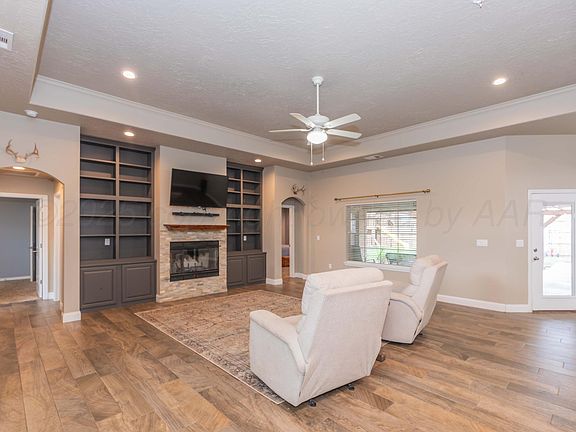 Spend the holidays in this stunning 4-bedroom home in City View! From the moment you step inside, you'll appreciate the spacious open-concept layout—ideal for entertaining friends and family. The kitchen is equipped with elegant granite countertops, while the living area offers a warm fireplace and custom built-in shelving for added charm and functionality. The private, isolated master suite is your personal retreat, featuring a luxurious 5-piece en suite bath. Step outside to enjoy a beautifully landscaped backyard with an extended patio/pergola. Additional features include a storage building and a playset. Updates per seller include fresh paint in the house and on the shed as well as new sod. Sellers offering $5000 carpet allowance with acceptable offer.