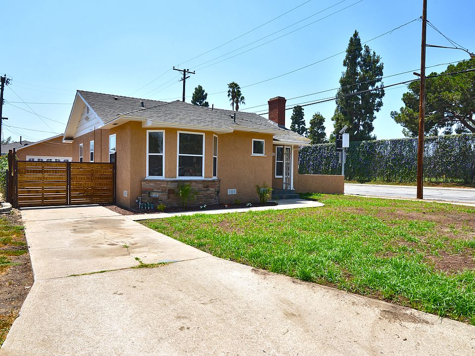 This Breathtaking family home in Downey features 4 spacious bedrooms 3 baths, a spacious master bedroom and bathroom double closets, beautifully remodeled kitchen with quartz counter tops, mosaic tile backsplash, new cabinets, new fixtures, a new dishwasher and a spacious breakfast bar. Custom two-tone interior paint with recess lighting throughout the home. Remodeled bathrooms with quartz counter top and entirely new installations. With the open floor plan the living room brings you original hardwood floors that were sanded, resurfaced and stained a cozy fireplace, central air, new plumbing, new electrical wiring throughout, inside laundry, 2 car detached garage with long drive way room for at least 4 additional cars. Spacious backyard with a newly constructed covered porch perfect for entertaining..there is so much more on this gorgeous home you won't want to miss out on...Title shows 3/2- but it's been fully permitted upgraded to 4/2.5