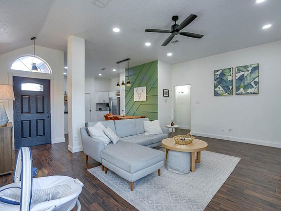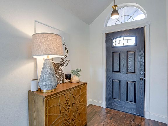 Welcome to this beautifully updated single-story home offering 3 bedrooms, 2 bathrooms, and a spacious 2-car garage. Located just minutes from the lake, this home combines comfort, style, and functionality. Inside, you'll find a light-filled open floor plan with newer windows, neutral tones, and no carpet throughout perfect for easy living and a clean aesthetic. The tastefully updated kitchen features painted cabinets, quartz countertops, newer appliances, and flows effortlessly into the main living space. A stunning fireplace adds warmth and charm to the living area, making it the perfect spot to unwind or gather with friends. The split-bedroom layout provides added privacy, while the beautifully updated bathrooms and fixtures elevate the overall feel. Step outside to enjoy a spacious backyard ideal for entertaining, with year-round lawn care included. Additional perks: solar panels for utility savings and a refrigerator included. This home has everything you need style, space, and convenience plus a location close to the water.
