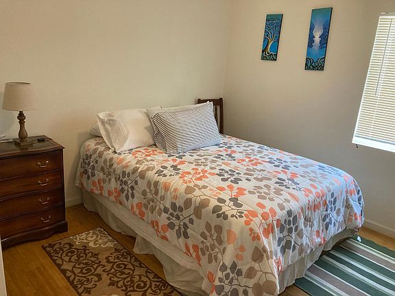 Fully furnished nice 2 bed, 2 bath house in Twentynine Palms. Recently remodeled, new flooring, new paint, new kitchen, new stove, new dishwasher. New strong central A/C and heating in each room and bathroom, new dual-pane windows keep heat and cold out. Washer/dryer inside the unit. All tile floors in living room/kitchen, bamboo wood flooring in bedrooms. There is a covered patio behind the house. Parking is available for 2 cars in the driveway, no garage.
