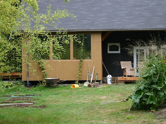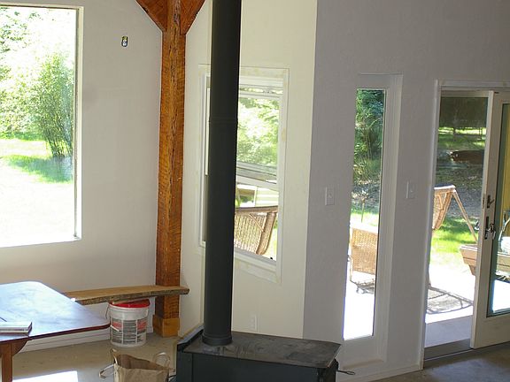 Set in forested acreage in the belly of south Whidbey Island. Partially landscaped lawn area with 20 varieties of bamboo, small pond, and nut trees. Timber framed house construction, concrete slab, open floor plan in kitchen, dining and living room area, combination bath laundry area with electric water heater, electric washer/dryer combo, claw foot tub and tiled shower. No septic - using instead a grey water drainage line, and a composting toilet. Separate wood stoves in living and bedroom areas. Tile and laminate counter tops. Ceiling fans in bedroom and living room. Soil and perc tests have been filed with county showing several viable locations for future septic installation. Well is 200' with water tests filed with county. Existing structure was permitted using 'owner builder code' but has not had final inspection. Home is for sale as is, no improvements will be considered for purchase agreement. Possible owner financing contract, or discount for cash. 30' access road allows for possible subdivision to 5 acres.