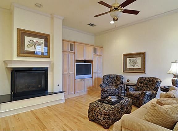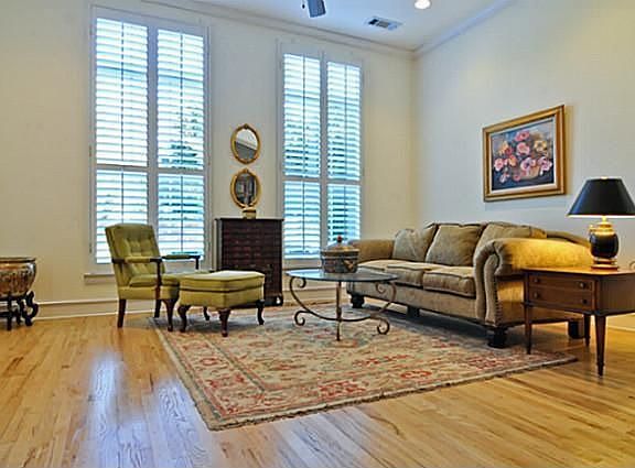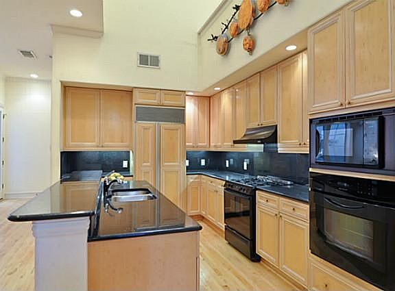 Sophisticated townhome close to Tollway & Lovers Lane shops.Liv rm w 2 story windows opens to din rm w custom built-ins.Kitchen has granite, brk bar&opens to den w views of patio. Ds bedroom w bath could be office.Upstairs is large mstr br w large bath&fp+ second bedroom w bath.Amentities: elevator,plan shutters,wood floors, good storage&sec system. House is very light& brite w many custom built-ins, and lovely private patio area.