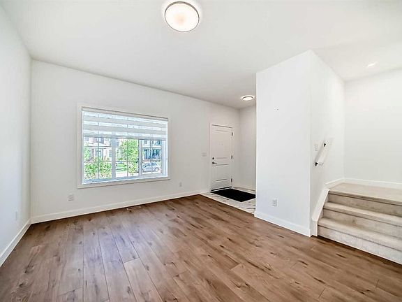 END UNIT! Introducing a stunning new TRUMAN-built 3-bedroom, 2.5-bathroom no condo fee END UNIT townhouse nestled in the vibrant new Southeast community of Rangeview—where modern elegance meets functional living! This beautifully designed home offers an open-concept main floor that features a bright chef’s kitchen with full-height cabinetry, soft-close doors and drawers, quartz countertops, an eating bar, stainless steel appliances including a double-door fridge and gas range, and a spacious pantry. A central kitchen flows seamlessly into the dining area and great room, perfect for everyday living and entertaining. The light-themed kitchen is further enhanced by a stylish island with pendant lighting. A cozy dining room at the back, a welcoming foyer, high ceilings, luxury vinyl plank flooring, a 2-piece bath, mudroom, and a separate side entrance complete the main floor’s thoughtful layout. Upstairs, discover a serene primary suite with a tray ceiling, walk-in closet, and a luxurious 4-piece ensuite featuring a double vanity and a standing shower. Two generously sized additional bedrooms, a full bathroom, and a dedicated laundry closet with washer and dryer provide ample space for families and guests alike. The unfinished basement presents endless potential for customization—recreation space, or extra storage. Enjoy the added convenience of a double garage (note garage measurements - will fit 2 small cards), ensuring private parking and security. Situated just steps from Rangeview’s playgrounds and greenspaces, and within minutes of the South Health Campus, the massive Seton YMCA, schools, churches, and shopping in Seton and Mahogany. With quick access to both Stoney Trail and Deerfoot Trail, commuting is effortless. Live better in this TRUMAN-built home—crafted for modern comfort, connection, and convenience in one of Calgary’s most desirable new communities. Don’t miss your chance to make Rangeview your new address—schedule a viewing today!