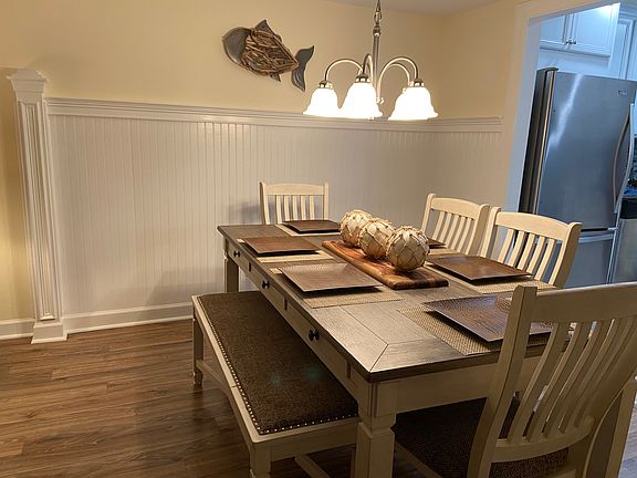 of the two level townhome includes a large living space, breakfast area with a 6 person dining table, fully appointed gourmet kitchen with granite countertops and stainless steel appliances. In addition to the coastal inspired furniture and decor, the living room includes a 55 inch mounted TV with streaming service for your enjoyment. The main level also has a half bath, laundry area with washer and dryer, laminate and tile floors and a door leading to the outside patio. Upstairs includes laminate flooring and two large bedrooms with queen size beds, lots of closet and storage space, smart TV's with streaming services as well as a full private bathrooms. One of the bedrooms also features built-in bunk beds with individual lighting and outlets for gadgets or tablets. The townhome is located right across the street from Grand Dunes resort where a beach lifeguard is on-duty at all times during the summer and an ice cream truck stops every single day - a highlight for your family's little ones and adults every year!