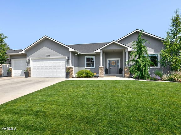 Welcome to 7403 W Whatcom Ave, a beautifully maintained 3-bedroom, 2-bathroom home offering 1,894 sq ft of stylish living space, built in 2016. Located in the highly desirable Crown Crest neighborhood of West Valley, this home blends quality craftsmanship with modern comfort and charm.Step inside to a light-filled open layout featuring crown molding, a cozy stone fireplace, and a spacious living area perfect for entertaining. The gourmet kitchen boasts rich wood cabinetry, granite countertops, stainless steel appliances, a gas range, and an oversized island ideal for gatherings.The primary suite is a true retreat with a spa-like ensuite offering dual vanities, a walk-in tile shower, and a generous walk-in closet. Two additional bedrooms and a full bath provide space and flexibility for family, guests, or a home office.Outside, enjoy your own private backyard oasis with a covered patio, porch swing, built-in gas fire pit, water feature, and beautifully designed hardscaping--perfect for relaxing or hosting year-round.A spacious 3-car garage offers ample room for vehicles, tools, and storage. With pride of ownership throughout and a prime location in the Crown Crest neighborhood, this 2016-built gem is one you don't want to miss.Schedule your private showing today!