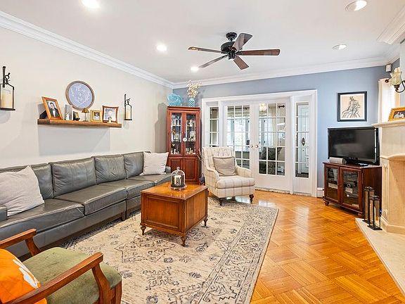Beautifully Renovated One-Family Home – Rare 4/5 Bedroom Gem! Welcome to this stunning single-family home offering a rare 4-bedroom layout that can easily function as 5 bedrooms, complete with 3 full baths and 1 half bath. Thoughtfully renovated throughout, this residence blends original charm with modern luxury. Main Floor: Enter through the enclosed front porch with its vaulted ceiling, then enter into a light-filled living space featuring elegant French doors. A stunning wood-burning fireplace with a marble mantle anchors the living room, combining timeless warmth with sophisticated style. Refinished original parquet floors add charm and character throughout. The open custom kitchen boasts quartzite countertops, high-end stainless-steel appliances, and a powder room for convenience. Sliding glass doors lead to your private backyard, perfect for entertaining. Second Floor: Three spacious bedrooms and a beautifully renovated full bath with double vanity provide comfort and style. Third Floor / This versatile level includes two additional rooms and a full bathroom, ideal as a home office, or additional bedrooms. Finished Basement: Fully renovated with tiled floors, a kitchenette, custom built-in storage, full bathroom, and separate utility/laundry room, adding valuable entertaining space. Outdoor & Parking: Enjoy a private yard with electric hook-up for outdoor TV, a deeded private driveway, and a 1-car garage. Location: Situated close to everything Bay Ridge has to offer—Shore Road, the NYC Ferry, shopping, dining, and the Express Bus. This rare home checks every box... spacious, stylish, and move-in ready. Will not last!
