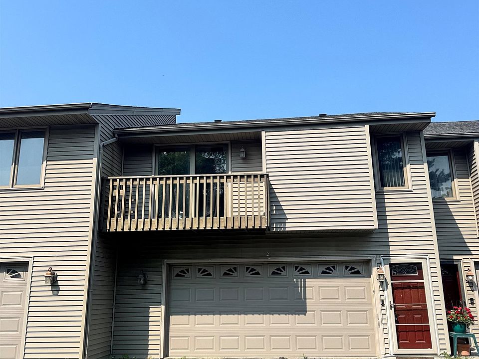 Welcome to this inviting two-bedroom, two-bath condo with an attached two car garage. Featuring soaring vaulted ceilings and a large transom window, the open living area is filled with natural light. Enjoy cozy evenings by the corner woodburning fireplace or host friends on your private deck—perfect for summer BBQs. The eat-in kitchen boasts beautiful quartz countertops, a tiled backsplash, and a deep stainless-steel sink. Sliding doors lead directly to your outdoor deck space for seamless indoor-outdoor living. Both bedrooms are generously sized. The primary bedroom features its own sliding door to another private deck and direct access to the upstairs bathroom. Downstairs, you'll find a spacious rec room, ideal for family gatherings, movie nights, or welcoming overnight guests. An updated full bathroom and a dedicated laundry area, with washer and dryer included, round out the lower level. Pet friendly and rentals are allowed.